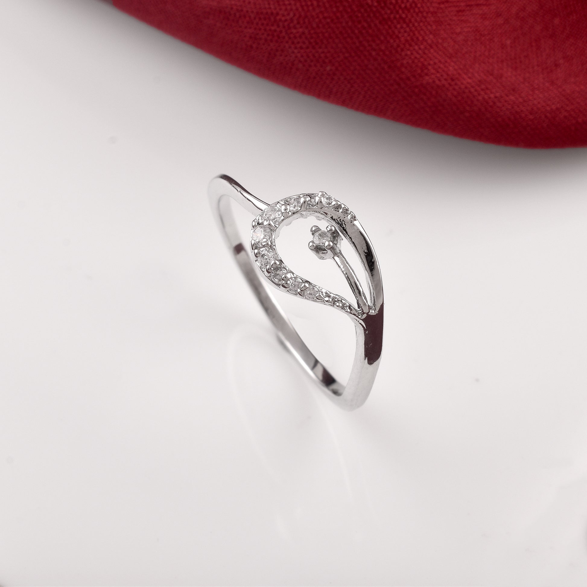 Introducing the Zaga HeartBloom Ring – a beautifully crafted silver-tone ring with a soft heart-petal design, gently cradling a single shining cubic zirconia. Ideal for everyday elegance, this piece symbolizes delicate love and modern style.