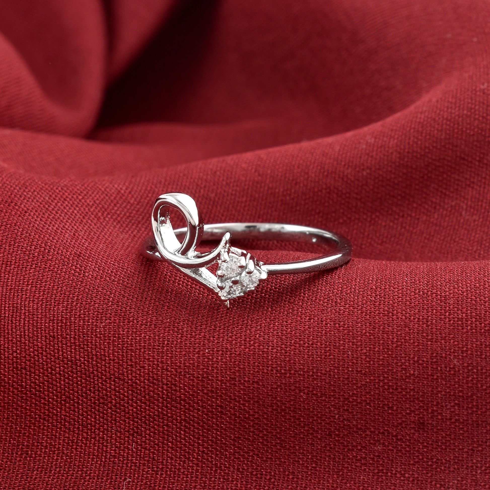 This elegant silver-tone designer ring is crafted with a modern swirl design and adorned with a sparkling cubic zirconia stone. A perfect choice for casual, formal, or daily wear, this ring combines simplicity with grace.