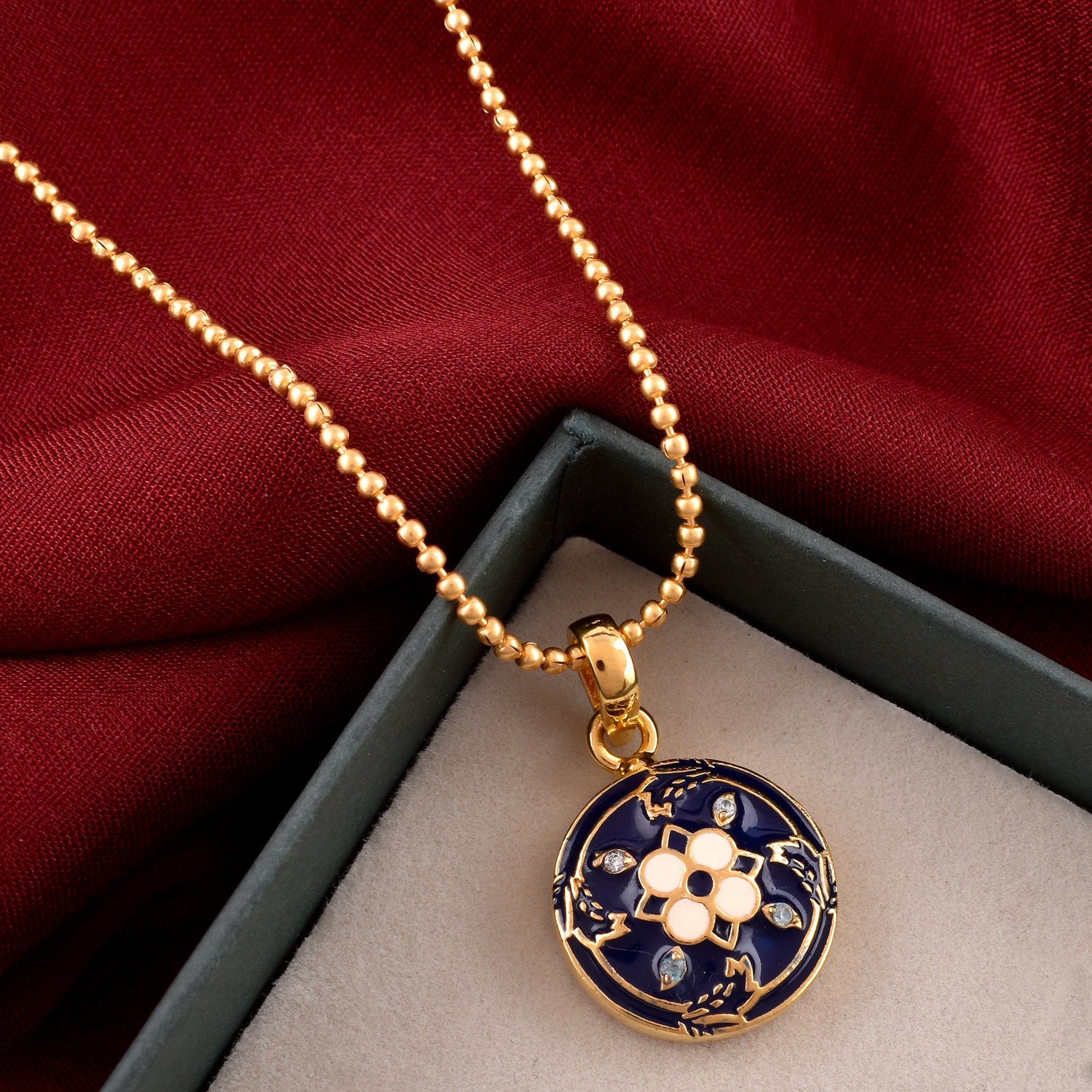 🌸 Royal Blue Floral Enamel Pendant Necklace – Timeless Elegance 🌸